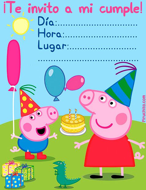 12 invitaciones con temática de Peppa Pig (y George) listas para imprimir